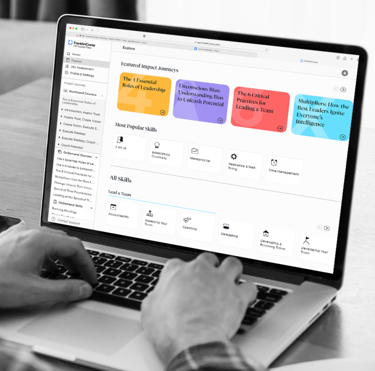 The FranklinCovey Impact Platform’s innovative technology provides an effective way to equip everyone in your organization with the mindsets and behaviors needed to do their very best work.